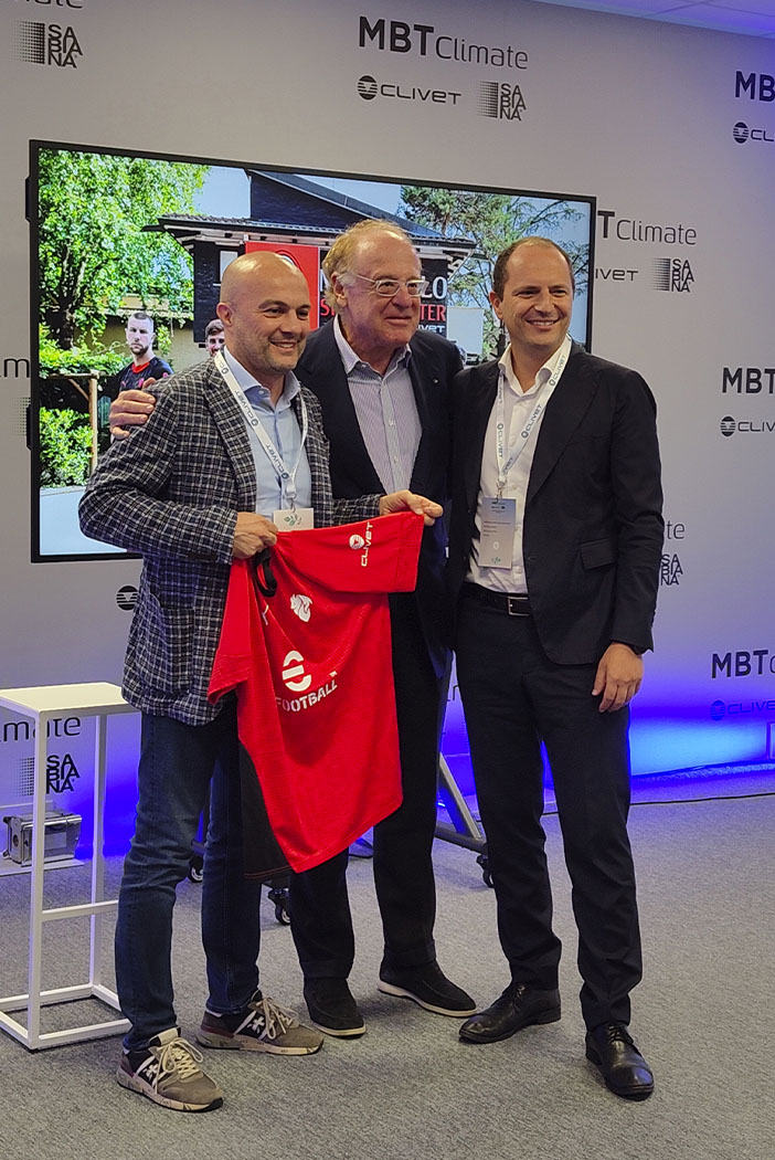 An der Veranstaltung nahm auch Paolo Scaroni, Präsident des AC Milan, teil, der die Gelegenheit nutzte, um Stefano Bellò - Präsident und CEO von MBT Climate - das neue Trainingstrikot des AC Mailand mit dem Clivet-Logo zu überreichen, ein Symbol für die Zusammenarbeit zwischen diesen beiden italienischen Spitzenkräften.