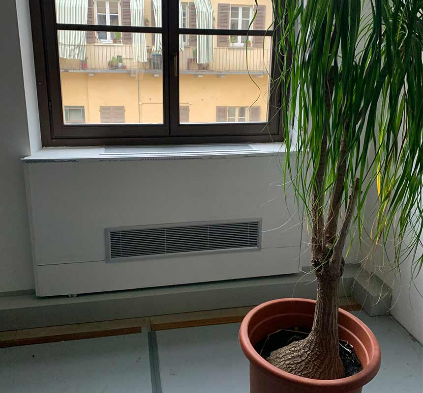 Für die Erneuerung und Reinigung der Luft sind 10 aktive Wärmerückgewinner im Kreuzstromverfahren HRV-DX mit direktem Expansionsregister für die Nachheizung/-kühlung zuständig, die außerdem mit einem Desinfektionsmodul Bioxigen ausgestattet sind, das in den Innenräumen jene Desinfektion reproduziert, die in Außenbereichen auf natürliche Weise, ohne chemische Zusätze, kontinuierlich und kontrolliert stattfindet. Die Technologie Bioxigen® setzt aktive Ionen frei, die kontinuierlich Mikroben aus der Luft beseitigen und bestimmte flüchtige organische Verbindungen (VOCs) in den Innenräumen und auf den Oberflächen reduzieren.