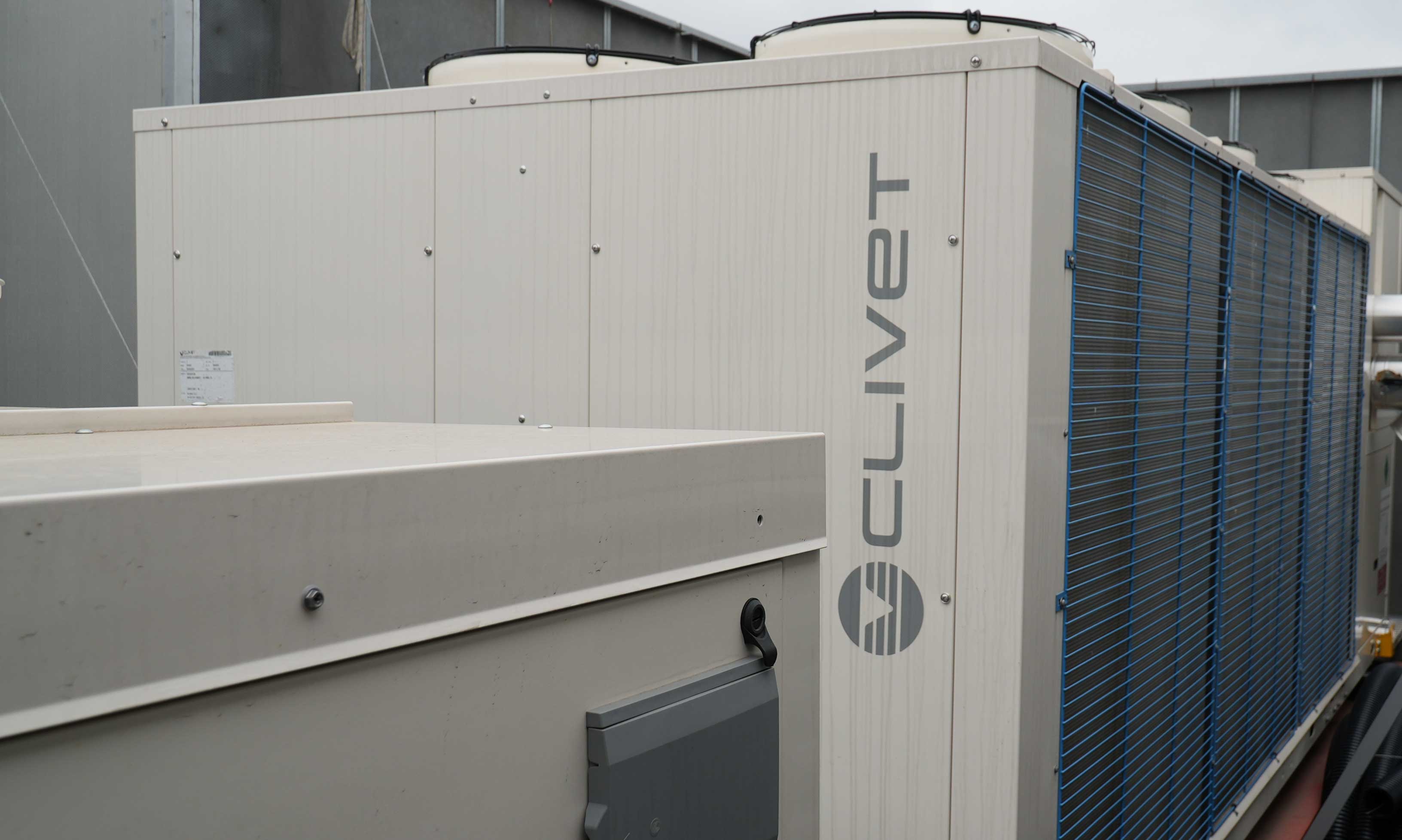 Für das restliche System wurde beschlossen, den alten Heizkessel durch einen Brennwertkessel mit einem 1500-Liter-Speicher und die alte Kältemaschine durch eine neue hocheffiziente Clivet-Kältemaschine zu ersetzen.